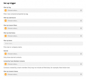 Sie können als Trigger für die Kontakterstellung weiter präzisieren, ob nur Kontakte mit bestimmten Tags, oder durch bestimmte Nutzer hinzugefügt werden.
