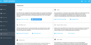 Gehen Sie nun in die Admin-Ansicht ihres VoIPstudio-Accounts und dort zu Integrationen. Klicken Sie auf „Integrationen aktivieren“