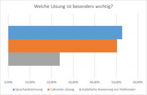 Besonders wichtig sind den befragten kleinen und mittleren Unternehmen Sprachaufzeichnung, Callcenter-Lösungen und zu guter Letzt auch statistische Auswertungen von Telefonaten.