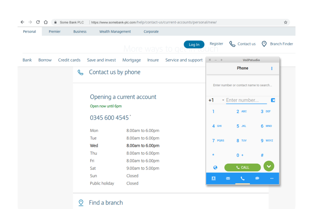 Tätigen und empfangen Sie Anrufe direkt im Google Chrome-Browser mit der VoIPstudio Click-to-Call-Funktion.