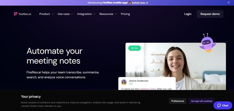 Fireflies.ai to zaawansowane narzędzie zaprojektowane z myślą o automatyzacji sporządzania notatek i poprawie efektywności spotkań dzięki sztucznej inteligencji. Platforma ta pomaga zespołom transkrypować, podsumowywać, wyszukiwać i analizować rozmowy głosowe, ułatwiając zarządzanie spotkaniami i ich śledzenie.
