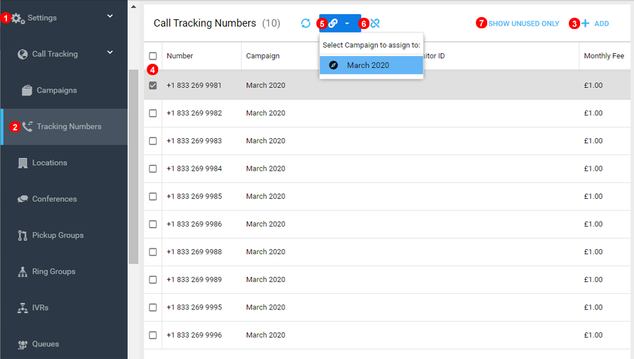 Aby uzyskać dostęp do tej nowej funkcji, wystarczy aktywować opcję Śledzenie połączeń w zaawansowanych ustawieniach panelu administracyjnego. Gdy już to zrobisz, pierwszym krokiem jest zakup puli numerów dla swoich kampanii.