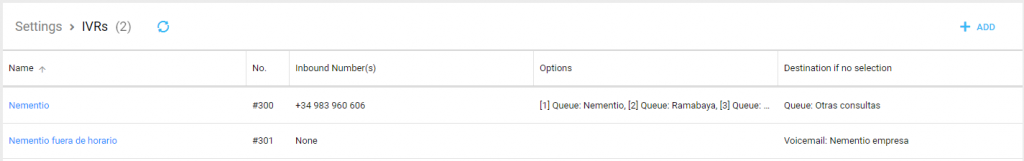W tym przypadku Nementio ma zaprogramowane dwa IVR-y na rozmowy w godzinach pracy i poza godzinami pracy.