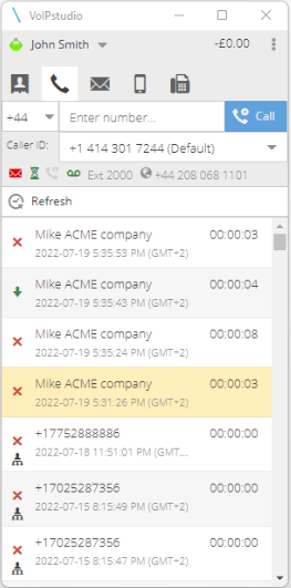 3. W rekordzie historii połączeń VoIPstudio możemy również zobaczyć nazwę kontaktu, co ułatwia przeglądanie.