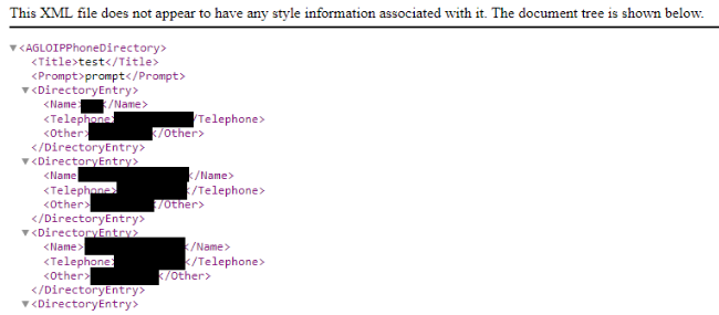 W tym przykładzie użyjemy tego kodu XML do zaimportowania kontaktów do telefonu Fanvil.